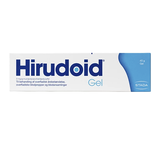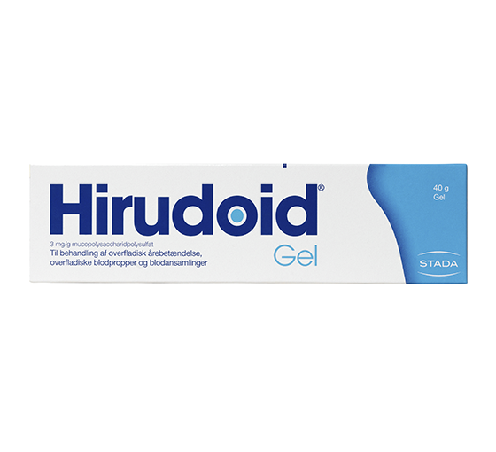 - Hirudoid behandler blå mærker og overfladiske blodansamlinger, ved at hæmme blodets evne til at størkne. Følelsen af spænding og smerte aftager i takt med regenereringen af bindevævet.