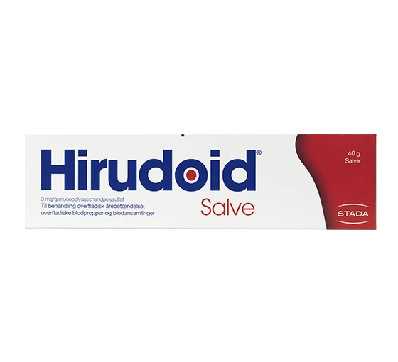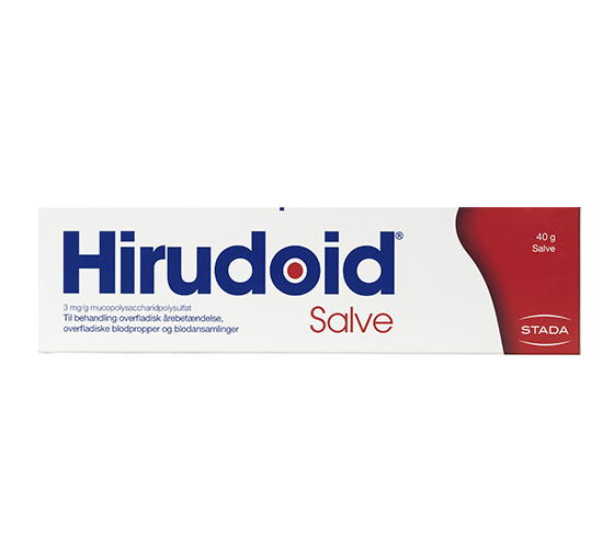 Den aktive ingrediens i Hirudoid Mucopolysaccharidpolysvovlsyreester" behandler overfladisk årebetændelse samt blå mærker hvilket lindrer smerter og inflammation forbundet hermed.